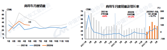 1-5月,商用車產銷同比分別增長14.2%和13.7%。