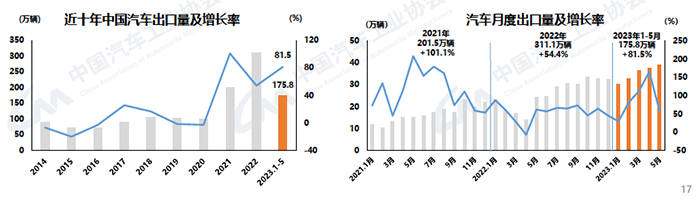 1-5月,汽車企業出口175.8萬輛,同比增長81.5%。其中,新能源汽車出口45.7萬輛,同比增長1.6倍。