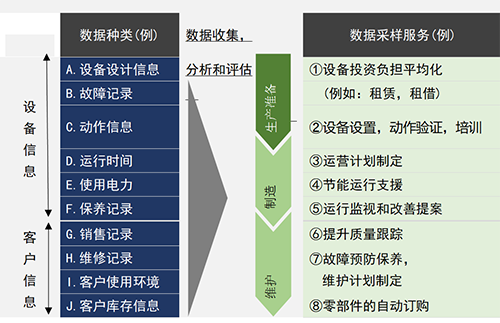 ②加強工程建議。例如,提出工程方案,負責用戶生產線的設計、制作、安裝等。機床制造商加強與加工相關的工程建議將很重要,不僅包括他們自己的設備,還包括其他公司制造的外圍設備。此外,在提出工程提案時,可以通過創建各種利用數據的服務來提出更高效和有效的方案。例如,在用戶企業生產準備過程中的設備啟動、運行保障、培訓服務等服務,以及在制造執行過程中的全線運行監控、節能運行支持等服務,預防性維護,測量結果的處理控制等等。還可以設想在用戶公司的多個生產過程中創建各種服務,例如在維護過程中提供反饋以支持質量保證和改進的服務等,并向用戶推薦出合適的服務公司(圖3)。