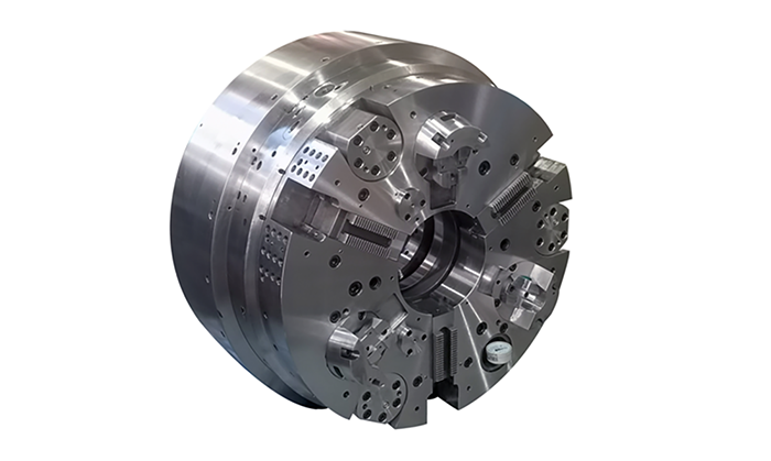 該卡盤是針對石油、天然氣管道加工行業(yè)所需的數(shù)控機床而研發(fā)的高端配套產(chǎn)品,具有全新性、高效性、安全性特點。卡盤采用四套機構(gòu),分別實現(xiàn)長徑比大的鋼管自定心夾緊、浮動夾緊、夾緊力損失補償和快進慢夾功能。先對工件前端進行自定心夾緊,然后進行浮動夾緊,減少工件的撓曲和變形,確保工件在加工過程中的穩(wěn)定性和精確性。同時,通過與楔心套連接的滑座,經(jīng)由不同的斜面完成卡盤的快進慢夾動作,實現(xiàn)卡盤的浮動夾緊功能。卡盤的夾緊力輔助補償功能由內(nèi)部的蓄能裝置及滑座與盤體之間配置的配重塊來完成。另外,卡盤可與數(shù)控機床系統(tǒng)對接進行自動控制,實現(xiàn)遠程監(jiān)控和自動化生產(chǎn),降低人工勞動強度,提高工作安全性和生產(chǎn)效率。
