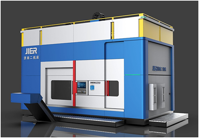 該機是針對新能源汽車大型框架類結(jié)構(gòu)件,如整體副車架、電池外殼等關(guān)鍵零部件加工需求而設(shè)計的高效精密加工設(shè)備。機床采用三直線軸和雙回轉(zhuǎn)軸的五軸總體結(jié)構(gòu)設(shè)計,配合部分加長的刀具和特種刀具,可以實現(xiàn)工作直徑最大達1500mm的超大規(guī)格零部件高效精密加工;直線運動軸系向前傾斜布置,從而獲得更開闊的加工區(qū)域和更低的加工重心;整體框架支撐的運動軸系輕量化設(shè)計,獲得更高的動態(tài)響應特性和加速度;A/B軸上不受限制的干涉直徑達1500mm,滿足副車架等大型框架類零件的加工需求;A/B軸搖籃轉(zhuǎn)臺無間隙滾子蝸輪驅(qū)動,具有高動態(tài)響應特性、高剛性和持久的精度保持性;轉(zhuǎn)臺水平裝拆零件,盤面8油路輸出,實現(xiàn)工件自動加緊放松,滿足自動化生產(chǎn)的需求;臥式主軸布局垂直落屑,加工區(qū)底部全域大斜面切屑收集,獲得良好的排屑和散熱效果;高性能HSK-A100電主軸,配備中心出水、氣幕保護等功能,具有很好的切削性能;緊湊型機床設(shè)計理念,占地面積小,一體式整體吊裝;全封閉防護罩加工區(qū)域側(cè)開門進出設(shè)計,方便操作者程序調(diào)試和近距離觀察。