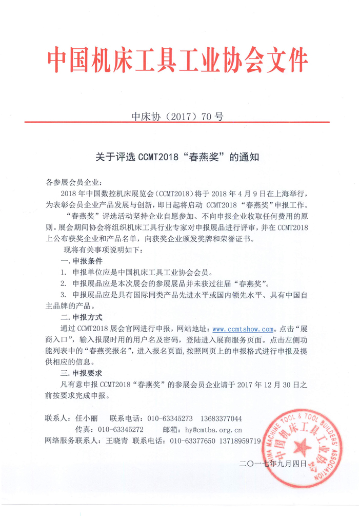 關于評選CCMT2018“春燕獎”的通知