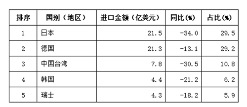 (1)金屬加工機床進口來源前五位國家和地區