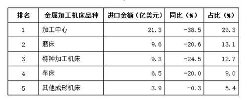 (3)進口金額排前五位的金屬加工機床品種