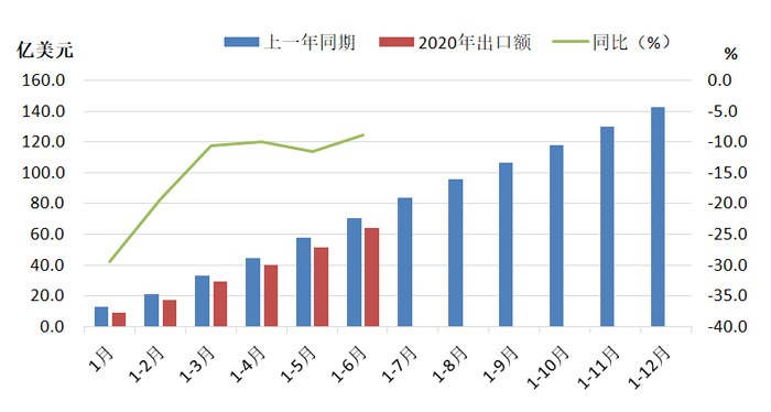 2020年1-6月份機床工具產品進口和出口情況分別見圖8、圖9。