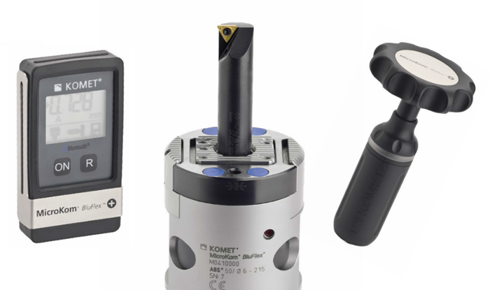 森拉天時(shí)集團(tuán)的高邁特推出了其依靠藍(lán)牙調(diào)節(jié)的MicroKomBluFlex微調(diào)精鏜刀具。它的微調(diào)精鏜頭通過(guò)藍(lán)牙技術(shù)將微調(diào)讀數(shù)在單獨(dú)的顯示器(例如手機(jī))上以μ級(jí)為單位顯示,從而無(wú)論是在對(duì)刀儀上還是機(jī)床內(nèi),當(dāng)用戶(hù)通過(guò)電子手輪操作調(diào)節(jié)鏜刀儲(chǔ)存時(shí),能更精確、更方便地在顯示器上讀取數(shù)據(jù),也可以在手機(jī)上通過(guò)應(yīng)用程序直接設(shè)定所需要的鏜孔尺寸并讓鏜刀直接調(diào)節(jié)到該尺寸。