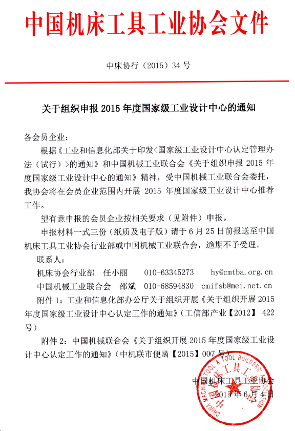 附件2 中國機械聯合會《關于組織開展2015年度國家級工業設計中心認定工作的通知》.pdf