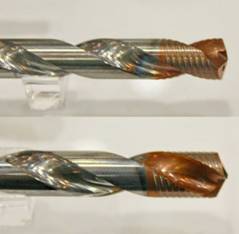 株洲鉆石推出了新的整體硬質(zhì)合金麻花鉆系列GD鉆頭6,替代原來(lái)的SU鉆頭。GD鉆頭優(yōu)化了鉆尖結(jié)構(gòu),并采用了雙刃帶結(jié)構(gòu)。減少了刃口崩缺或者斷刀,提高了加工的穩(wěn)定性,保證了刀具整體的切削性能以適應(yīng)多變的客戶工況。其良好的孔加工質(zhì)量及精度在較差的工況下也能表現(xiàn)良好的切削性能。其光滑的涂層表面,能夠顯著減少切削阻力并且具有更加優(yōu)異的耐磨性能。其金黃色涂層使其得到了明顯的磨損識(shí)別效果。作為通用加工鉆頭系列,可應(yīng)用于各個(gè)行業(yè)、多種材料的加工。株洲鉆石的試驗(yàn)結(jié)果表明,新的GD鉆頭比原來(lái)的整體硬質(zhì)合金鉆頭使用壽命增加了1倍。