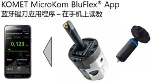 高邁特公司的MicroKom BluFlex?微調(diào)精鏜頭9,是另一種帶有單獨(dú)顯示數(shù)值系統(tǒng)的產(chǎn)品。它通過(guò)藍(lán)牙技術(shù)將微調(diào)讀數(shù)在單獨(dú)的顯示器上以μ級(jí)為單位顯示,從而無(wú)論是在對(duì)刀儀上還是機(jī)床內(nèi),都能更精確、更方便地調(diào)節(jié)和讀取數(shù)據(jù)。高邁特公司介紹,最新的應(yīng)用程序可以直接通過(guò)手機(jī)進(jìn)行讀數(shù)。