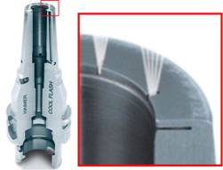 翰默公司展出了Cool Flash飛瀑刀柄(圖16),其端面有一些細縫而不是小孔,細縫的一端直接貼著刀柄。該結構能使切削液即使在高速旋轉時也能沿著刀柄形成有效的冷卻。
