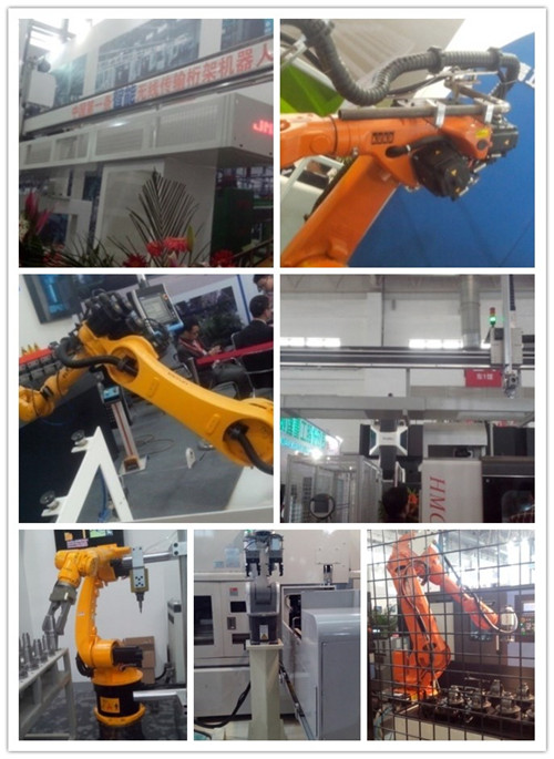本屆展會上展出的工業機器人,按結構形式有桁架式機器人、關節式機器人、并聯式機器人、專用途型機器人等;按用途有自動上下料和搬運機器人、碼垛機器人、焊接機器人、激光機器人、檢測機器人等,可完成焊接、噴涂、切割、搬運、去毛刺、熱處理、鍛造、鑄造、加工、檢測等危險、惡劣環境或重復性工序和工作等。