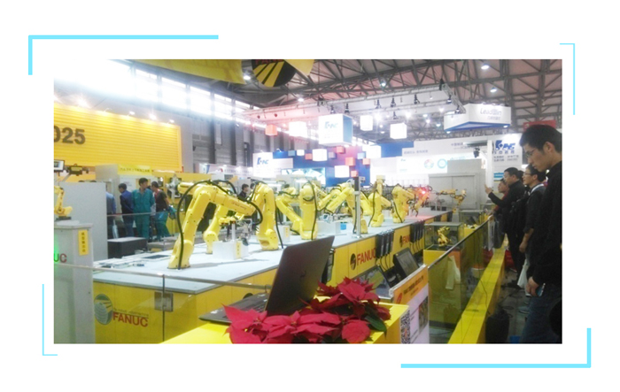 此次FANUC展出的是智能機器人模型裝配生產線,整個生產線從取料、送料到安裝都是由機器人完成。