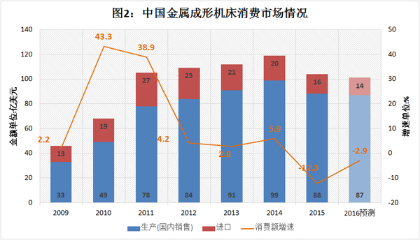 陳惠仁以翔實的數據和圖表分析了金切機床、成形機床及工量具市場的相關情況,指出2016年市場整體趨勢還是下行的,同時,中國機床市場進口方面也出現了一些變化。