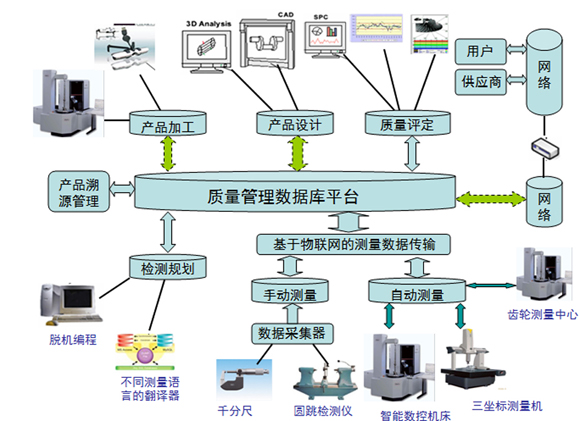 “基于物聯(lián)網(wǎng)的測(cè)量與質(zhì)量控制系統(tǒng)”(圖1)的發(fā)展和應(yīng)用推廣,體現(xiàn)了網(wǎng)絡(luò)化智能化精密測(cè)量技術(shù)和量具量?jī)x在我國(guó)制造業(yè)轉(zhuǎn)型升級(jí)過(guò)程中的重要性和緊迫性。展會(huì)上蔡司口號(hào):質(zhì)量網(wǎng)絡(luò)化——源于一切真實(shí)數(shù)據(jù),表明精準(zhǔn)測(cè)量是質(zhì)量保證的前提和基礎(chǔ);三豐的“Measurlink”測(cè)量數(shù)據(jù)網(wǎng)絡(luò)系統(tǒng),表明將測(cè)量融入制造全過(guò)程的整體質(zhì)量管理理念;北一機(jī)床介紹了生產(chǎn)加工遠(yuǎn)程監(jiān)控和故障診斷及反饋控制的閉環(huán)制造系統(tǒng),令人信服自動(dòng)化無(wú)人車(chē)間的實(shí)現(xiàn)不再久遠(yuǎn);西安交大基于物聯(lián)網(wǎng)的“數(shù)字化檢測(cè)與質(zhì)量管理系統(tǒng)”eQCs,是一個(gè)集產(chǎn)品檢測(cè)工藝、檢測(cè)過(guò)程、質(zhì)量控制于一體的數(shù)字化解決方案。當(dāng)前制造質(zhì)量已提升為國(guó)家戰(zhàn)略,質(zhì)量、效益和品牌,息息相關(guān)。相信“中國(guó)速度”向“中國(guó)質(zhì)量”的轉(zhuǎn)變指日可待。