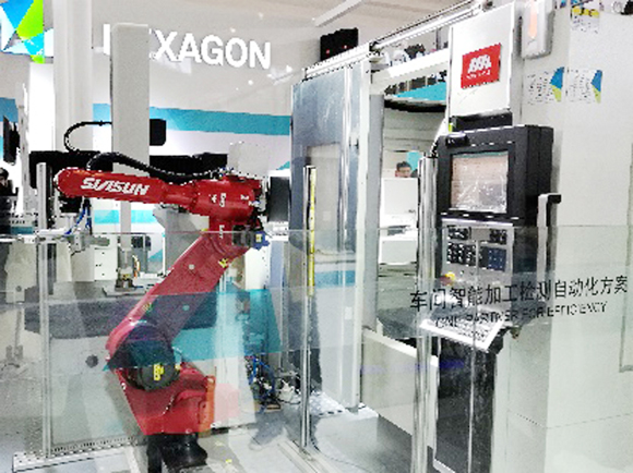 海克斯康介紹的智能自動(dòng)化方案,聚焦于提高質(zhì)量,增加效益。采用了加工檢測(cè)過(guò)程自動(dòng)化、網(wǎng)絡(luò)化數(shù)據(jù)傳輸及統(tǒng)計(jì)分析診斷、反饋閉環(huán)修正補(bǔ)償?shù)认冗M(jìn)技術(shù),將數(shù)控加工機(jī)床/柔性制造系統(tǒng)等制造裝備的硬軟件,與車(chē)間型測(cè)量機(jī)、在機(jī)測(cè)量傳感器/在線工位測(cè)量?jī)x、對(duì)刀儀等檢測(cè)儀器的硬軟件,以及機(jī)器人等生產(chǎn)車(chē)間運(yùn)行管理等硬軟件集成融合,構(gòu)建成一個(gè)基于車(chē)間自動(dòng)化智能加工檢測(cè)的局域物聯(lián)網(wǎng),實(shí)現(xiàn)自動(dòng)編程、零件自動(dòng)識(shí)別、自動(dòng)上下料、自動(dòng)找正加工原點(diǎn)、自動(dòng)檢測(cè)和修正刀具參數(shù)、自動(dòng)加工、自動(dòng)檢測(cè)工件、實(shí)時(shí)統(tǒng)計(jì)分析評(píng)估及故障診斷、自動(dòng)閉環(huán)修正補(bǔ)償加工及自動(dòng)報(bào)警存檔等自動(dòng)化智能功能。雷尼紹公司展出的一套車(chē)間數(shù)控機(jī)床自動(dòng)“切削刀具智能檢測(cè)補(bǔ)償系統(tǒng)”,就是一個(gè)極好應(yīng)用實(shí)例。