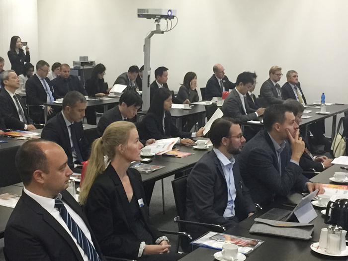 9月20日上午(德國當地時間),中國機床工具工業協會在漢諾威展覽館的會議中心召開新聞發布會。來自各國機床協會的主要負責人,以及部分參展商代表、媒體記者等近70人參會。中國機床工具工業協會常務副理事長毛予鋒、中國國際展覽中心集團公司總裁賀彩龍、中國機床工具工業協會秘書長王黎明出席發布會并在主席臺就座。王黎明主持會議。