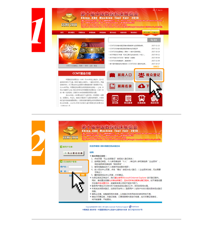 進(jìn)入CCMT官網(wǎng):www.ccmtshow.com,點(diǎn)擊進(jìn)入“觀(guān)眾登記”,按要求填寫(xiě)相關(guān)表格即可。