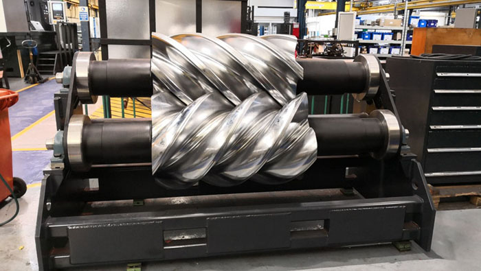 PTG公司車間正在加工過程中的大型螺桿