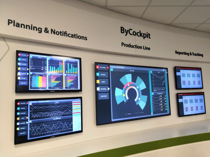ByCockpit,板材加工實時數字信息軟件。借助ByCockpit,實現生產率和優化潛力的透明化,實現加工設備的全局概覽和單臺設備的細節視圖,包括設備的性能,開動率,生產和保養時間,材料庫存量等;隨時隨地監控關鍵指標。
