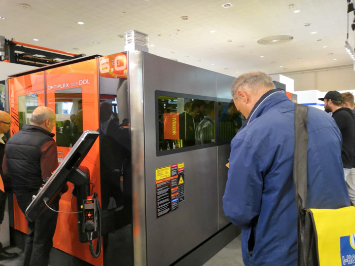 MAZAK公司的展品有FG-220 DDL管材激光加工機床、Optiplex 3015 DDL激光切割機、Optiplex Nexus 3015 Fiber光纖激光加工機床、Optiplex3015激光切割機以及一臺由Optiplex3015 Fiber III和一臺工業機器人組成的智能制造單元。
