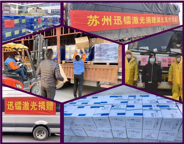 蘇州迅鐳激光科技有限公司分兩批捐贈(zèng)資金和物資。在向湖北省隨州市紅十字會(huì)捐贈(zèng)100萬元專項(xiàng)資金的同時(shí),向隨州、濱海紅十字會(huì)及其他抗疫一線單位捐助兩批物資,分別是:10噸消毒液原液、20萬雙醫(yī)用手套、6萬只醫(yī)用口罩、6000副醫(yī)用防護(hù)眼鏡、500瓶手部泡沫消毒劑;5萬只醫(yī)用口罩、10萬雙醫(yī)用手套、2000副防護(hù)眼鏡、6萬只鞋套、1.8萬只帽子。