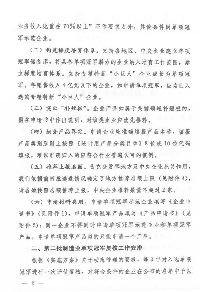 和復核第二批制造業單項冠軍