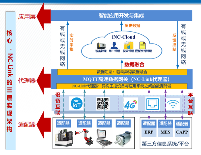據(jù)了解,NC-Link協(xié)議已在武漢華中數(shù)控股份有限公司、廣州數(shù)控設(shè)備有限公司、科德數(shù)控股份有限公司、沈陽高精數(shù)控股份有限公司、沈機(jī)(上海)智能系統(tǒng)研發(fā)設(shè)計(jì)有限公司等企業(yè)的數(shù)控產(chǎn)品實(shí)現(xiàn)了應(yīng)用。在嘉泰數(shù)控科技股份公司、四川普什寧江機(jī)床有限公司、武漢華工激光工程有限責(zé)任公司和武漢華大新型電機(jī)科技股份有限公司的生產(chǎn)線和智能工廠進(jìn)行了實(shí)驗(yàn)驗(yàn)證。同時(shí),在武漢、上海、廣州、西安等地建立了云數(shù)據(jù)中心,在數(shù)千家企業(yè)及高校進(jìn)行了部署實(shí)施,每天匯聚并處理上億條數(shù)據(jù),采集數(shù)控裝備中上千個(gè)點(diǎn)位信息,涵蓋設(shè)備狀態(tài)、報(bào)警信息、加工計(jì)件、采樣數(shù)據(jù)、調(diào)機(jī)數(shù)據(jù)等各種工況。