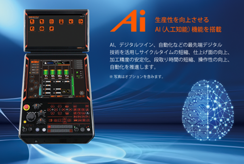 MAZAK公司展出的Variaxis i-800 NEO高速、高精度立式五軸加工中心,一次裝夾,可實現多面銑削加工,應用先進的刀具和高速加工技術,大幅減少加工時間。配置Mazatrol Smooth Ai,具有多項增強智能功能。如SolidMazatrol 利用3D CAD數據和增強人工智能加工工藝選擇來優化加工程序,提高加工效率;Smooth Ai Spindle主動檢測主軸的振動型號,應用人工智能技術優化切削參數,提高表面質量;Ai Thermal Shield檢測溫度變化,應用人工智能學習算法,對熱位移進行補償,保證穩定的加工精度。另外,Mazatrol Smooth Ai還具有數字雙胞胎虛擬仿真、生產項目管理等功能。
