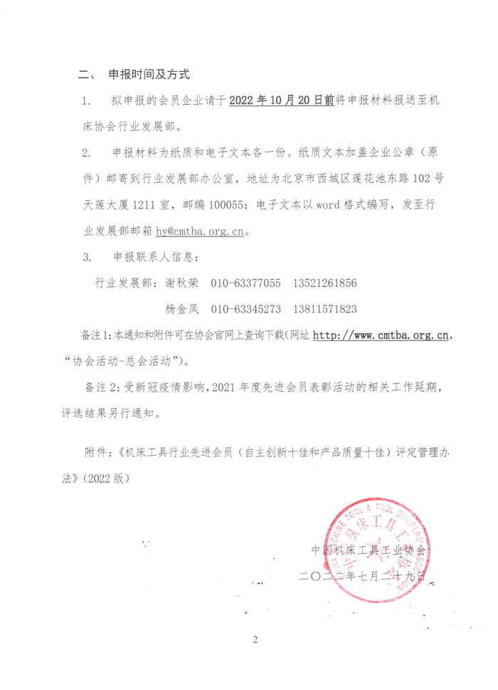 2022年度“機床工具行業先進會員(自主創新十佳和產品質量十佳)”表彰活動的具體事項詳見以下文件。請申報企業注意時間節點:2022年10月20日前 將申報材料報送至機床工具協會行業發展部。