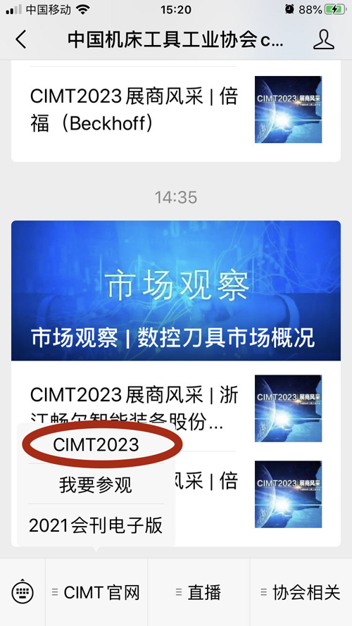您還可以簡單通過展會主辦方中國機床工具工業協會的官方微信公眾號菜單直接進入CIMT官網查閱。