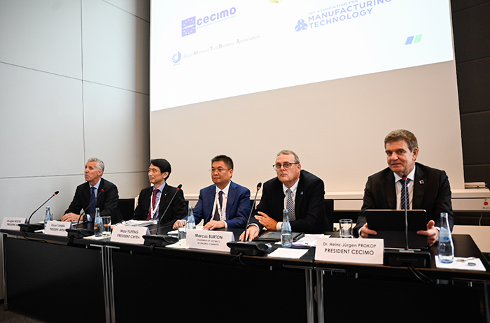 在CECIMO(歐洲機床工業(yè)協(xié)會)舉辦的一場新聞發(fā)布會上,來自美國、中國、日本和歐洲的機床協(xié)會負責人聚集在一起,介紹各自國家或地區(qū)機床工業(yè)發(fā)展情況以及應對全球市場挑戰(zhàn)的韌性和實力。中國機床工具工業(yè)協(xié)會會長毛予鋒參加會議并發(fā)言。