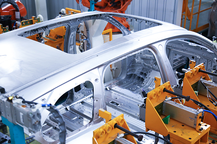 1. 白車身頂蓋激光焊接自動化產線(圖1)。圍繞“激光+智能制造”優勢,華工激光為客戶提供了豐富的定制化焊裝線體解決方案。目前,華工激光在各大主機廠已有50余條焊裝線,下線車型200+,整車激光應用國內第一,涉及焊裝主線、四門兩蓋、地板線等,其中“汽車制造中的高質高效激光焊接、切割關鍵工藝及成套裝備”項目于2015年榮獲國家科技進步一等獎。設備自動化程度高,穩定量產車型超過千萬輛,激光釬焊速度可達120mm/s,激光飛行熔焊速度達到180mm/s,整線生產節拍最快可達43s。